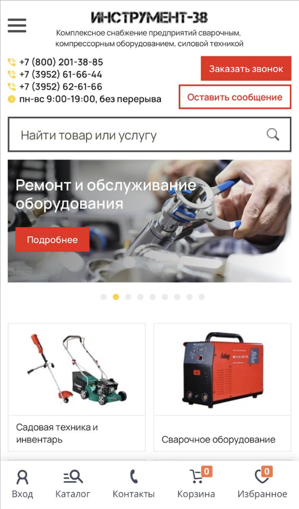 Клиент — компания, занимающаяся поставками профессионального строительного, измерительного, садового и электроинструмента, а также товаров для туризма и рыбалки. Компания уже более 10 лет на рынке Иркутска, но до этого времени онлайн не продвигалась, пришли к нам с запросом: «Хотим продвижение, что порекомендуете?»