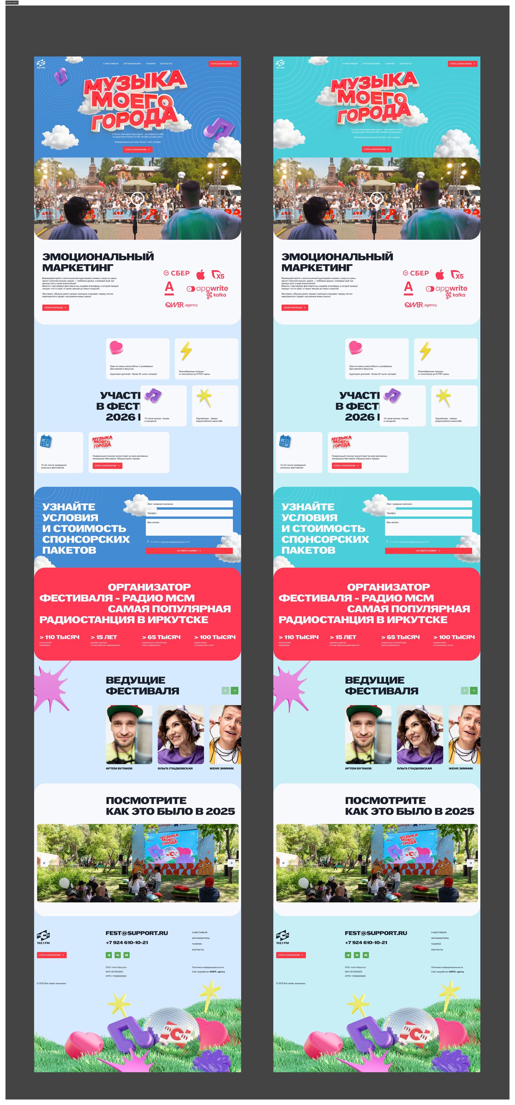 Главный результат — это удобный и эффективный инструмент для клиента, который уже сейчас работает на привлечение спонсоров для фестиваля 2026 года. Сайт доносит масштаб события, его аудиторию и те эмоции, которые получают гости, что является ключевым аргументом для потенциальных партнёров.
