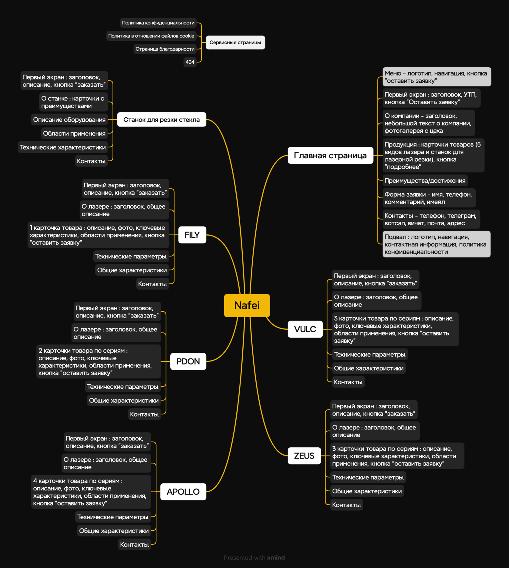 • Внутренние страницы с подробной информацией "О компании" и разновидностей лазеров.
